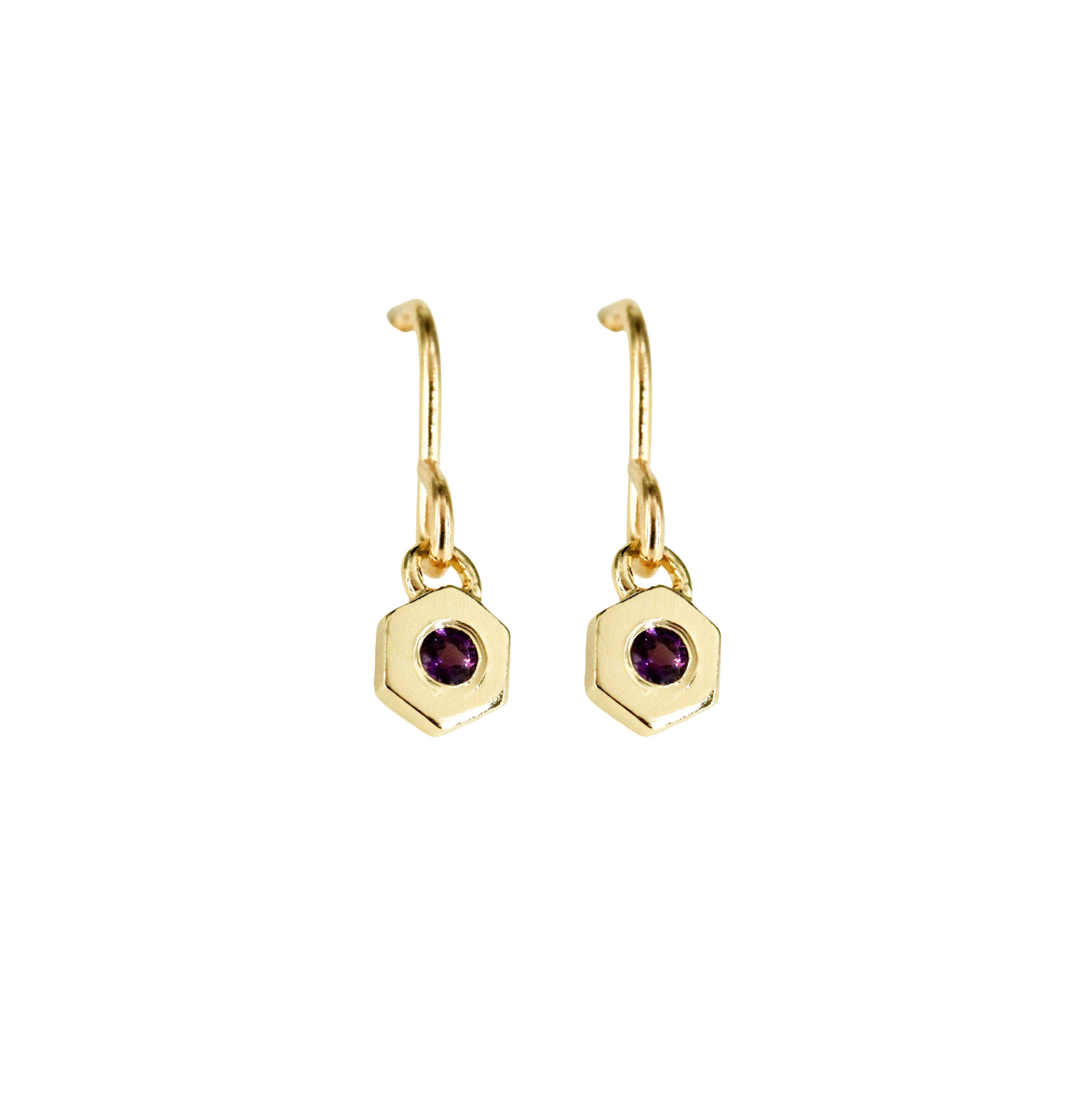 Zoom Birthstone Hexagon Earrings - February - Amethyst