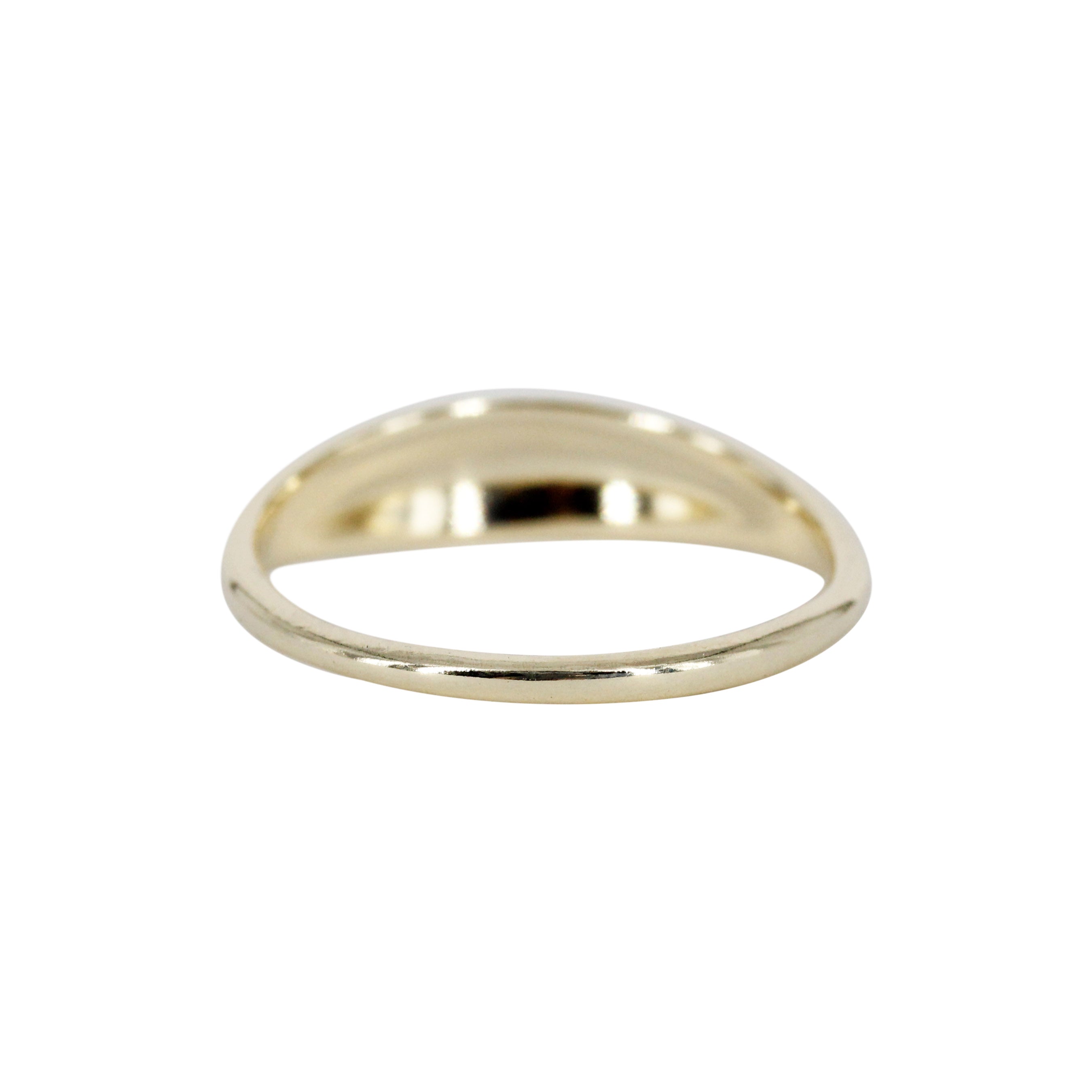 A delicately curved shaped ring with seamlessly smooth lines and a slightly domed center. A sleek and beautiful ring that nods to futures and pasts. This is one of my hand carved designs that I make using the ancient technique of lost wax casting .
