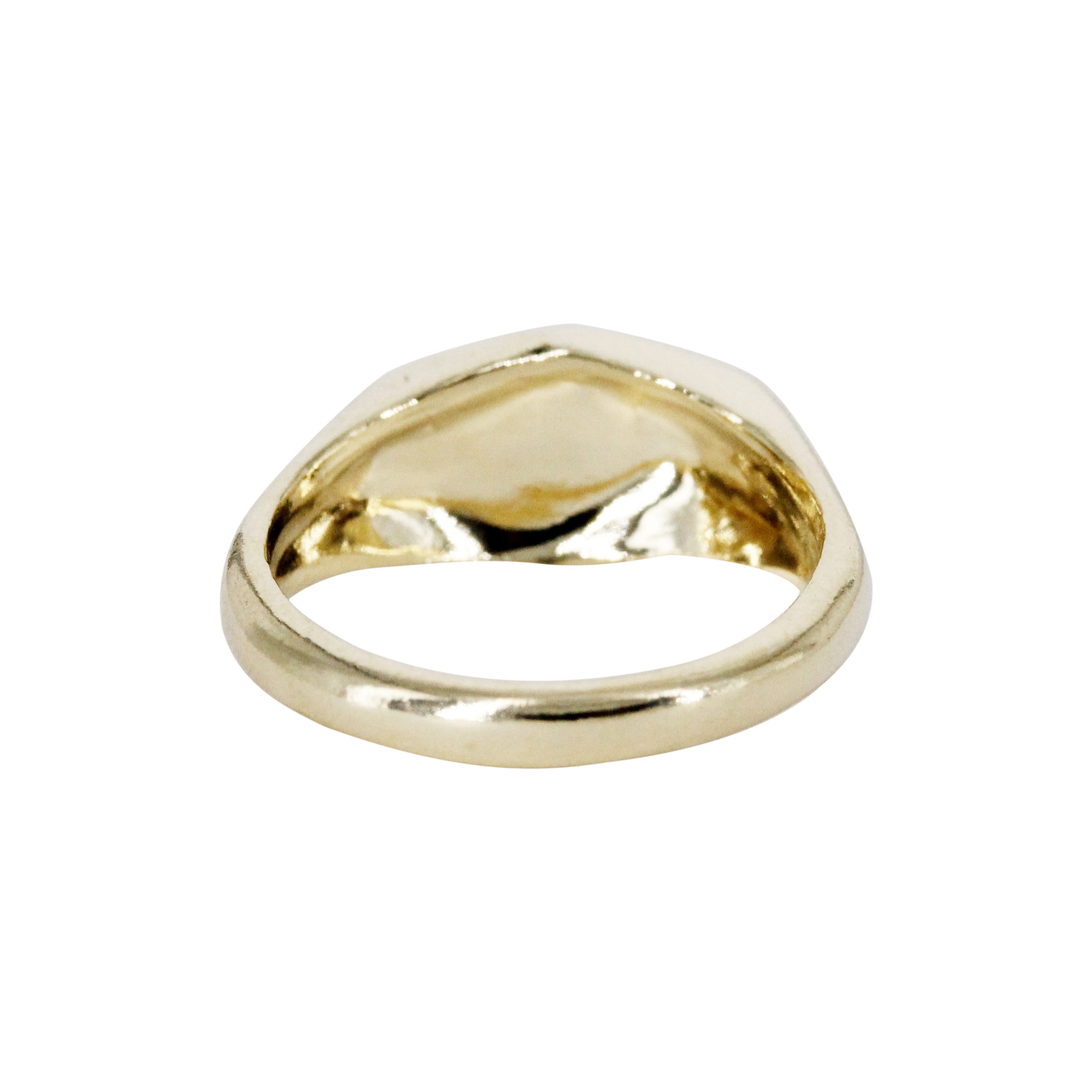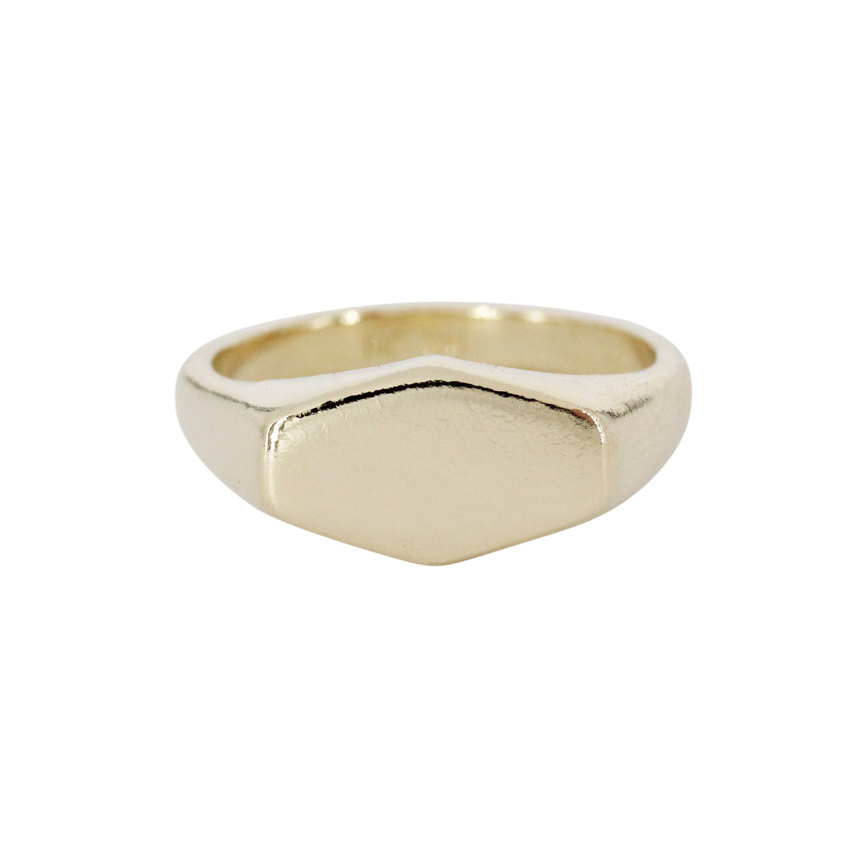 This is not your classic signet ring but can be thought of this way as the face is an open canvas for a hand engraved letter or small design. The shape of the hexagon is found throughout nature and can also be associated with harmony and balance.