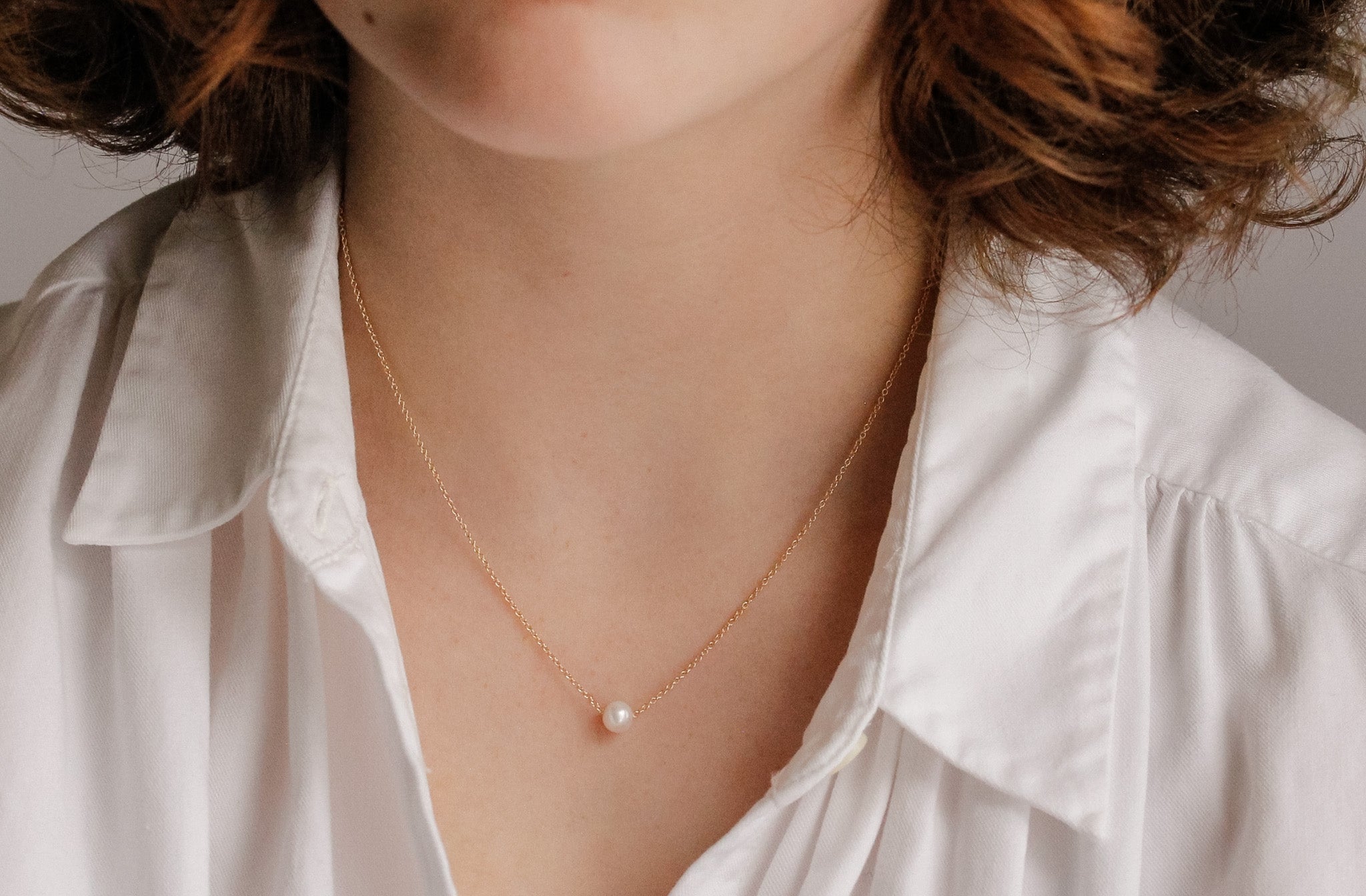 A solo lustrous pearl necklace makes for a great everyday wear piece of jewelry.