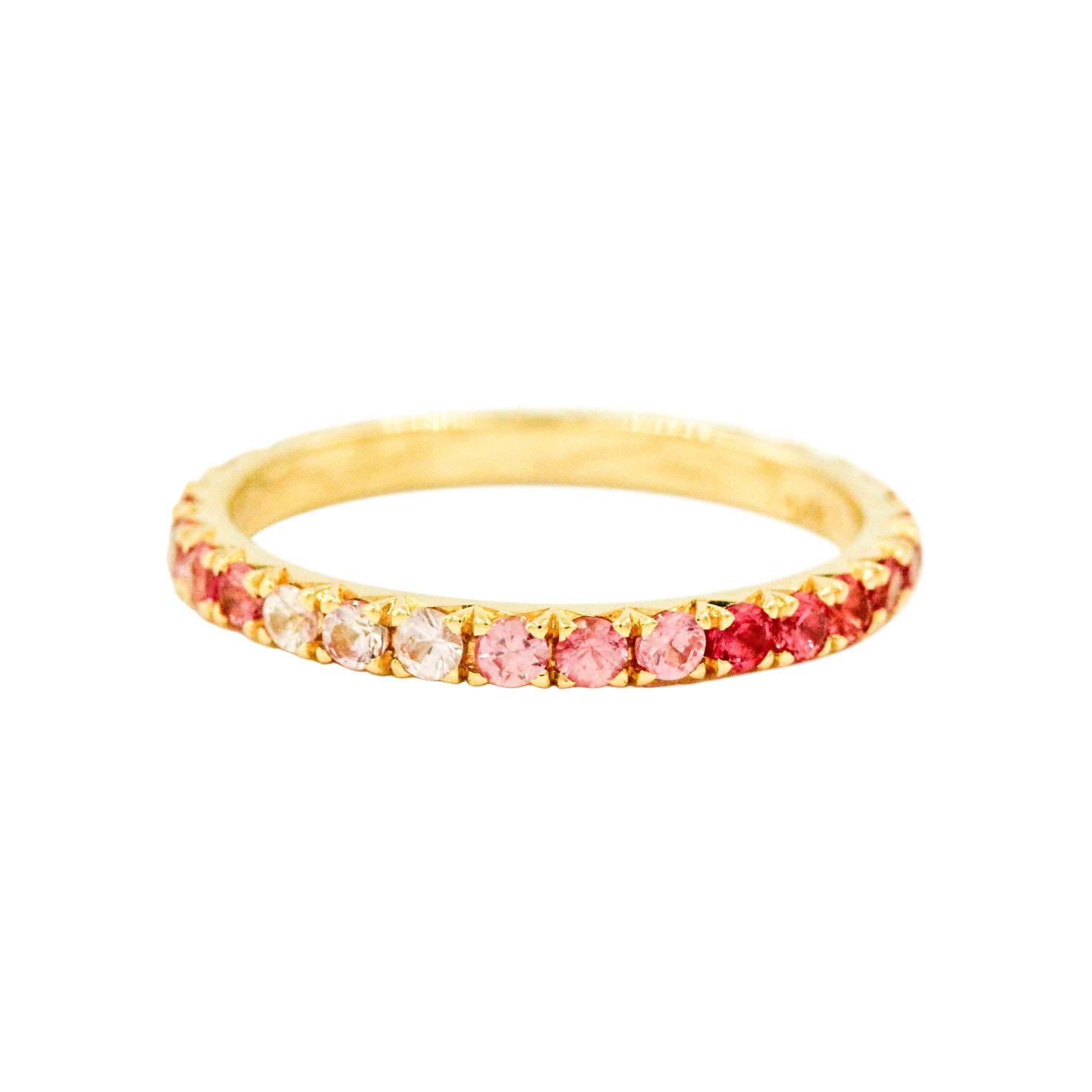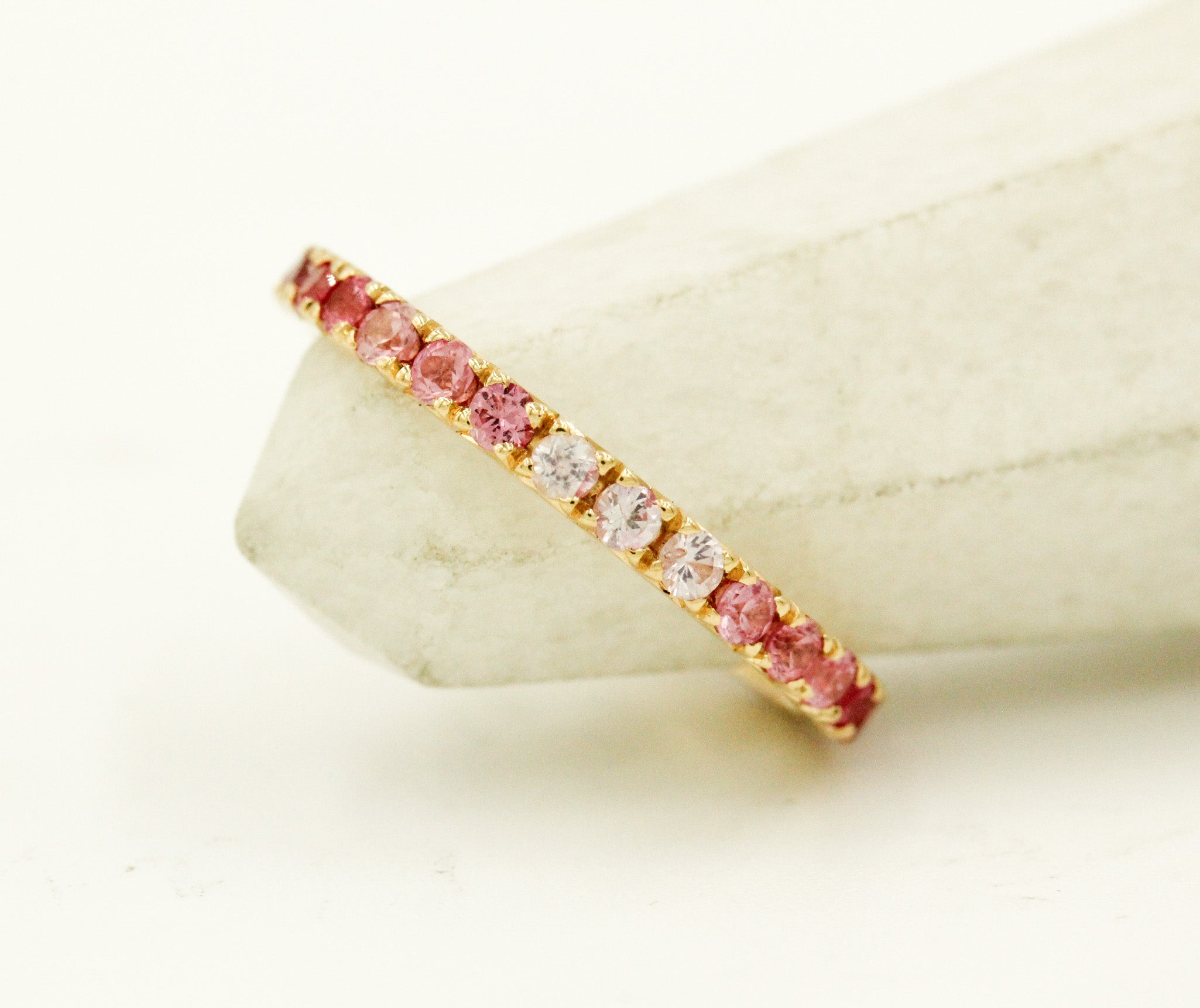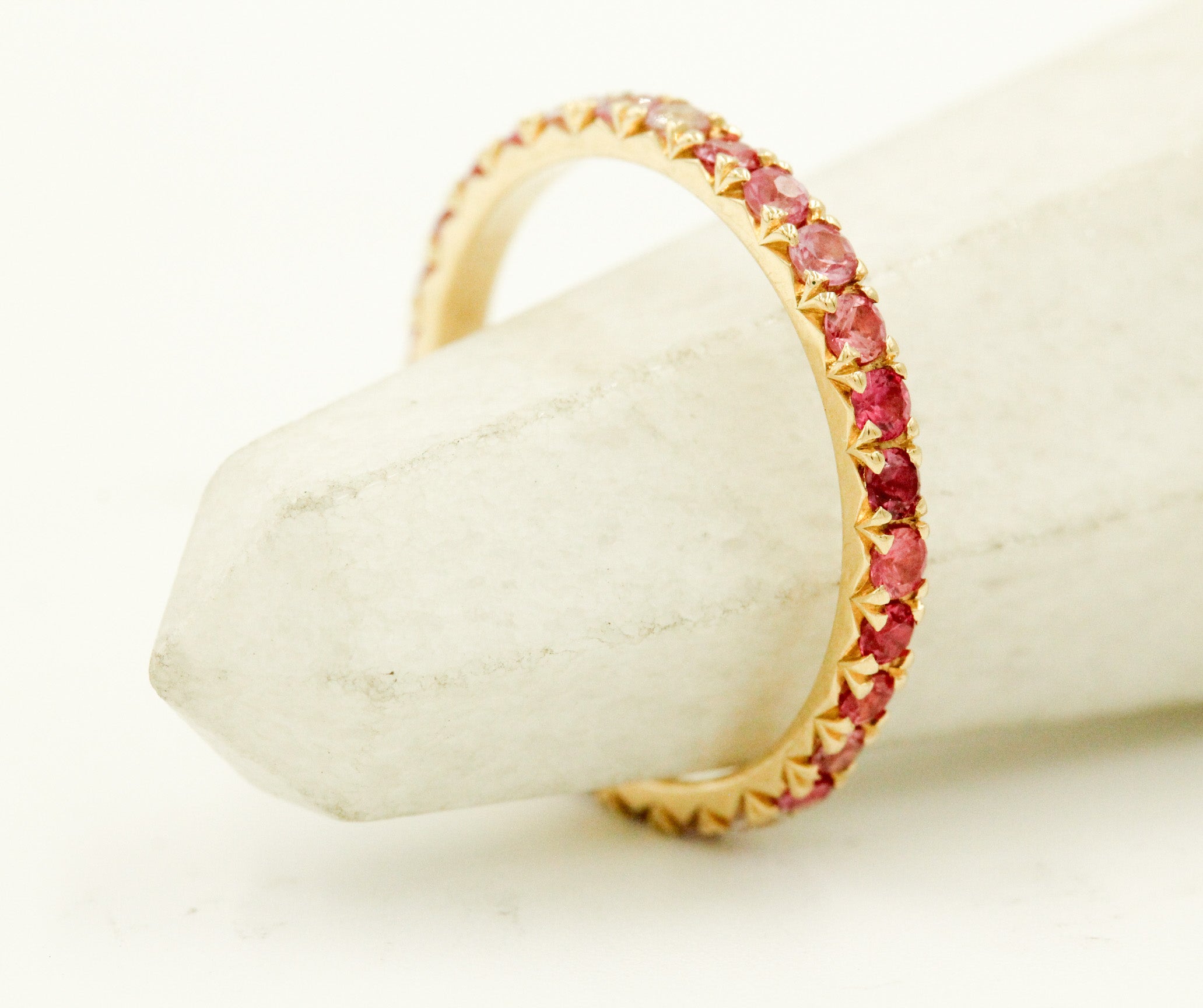 "Barbee" French Setting Pink Sapphire Pavé Eternity Band